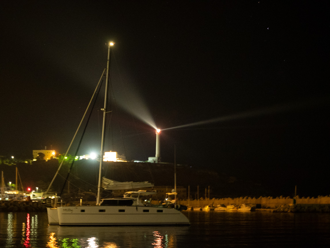 Start kurz vor Sonnenaufgang, wir queren den Golfo di Squillace bei glatter See in Begleitung von Delfinen. Lido di Squillace wäre kulinarisch ein Stopp wert, Ueli und Anne gaben uns den Tipp. Leider ist Morgen wieder mit Starkwind zu rechnen, daher ein Anlanden zu riskant.