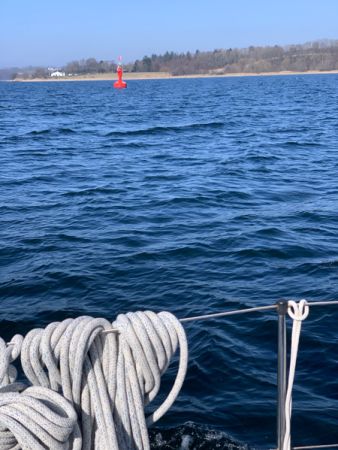 Ingo, bringt uns nach Schausende, Claus von der Marina Toft ist mit der Merci bereits angekommen Endlich können wir auf unser Schiff. Ein paar Arbeiten sind zu erledigen und die Merci ist bereit für die Überführung nach Kappeln an der Schlei. Am nächsten Morgen, dem 25. März, fahren wir bei sonnigem Wetter los, die Merci erhält in Kappeln neue Segel, einen neuen Anker mit Kette und das ganze Gepäck vom Panda.