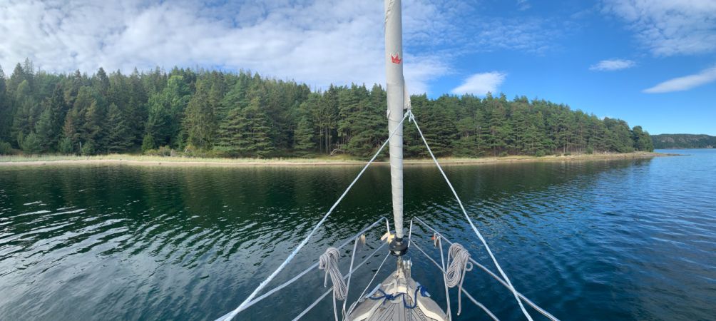 Raus in Richtung Norden, bei strahlendem Sonnenschein segeln wir mit gereffter Genua und sind gespannt auf die Westschären: Sie sind kahler, Häuser thronen auf den Felsen, ganze Dörfer, angeordnet, wie die Felsen es vorgeben, ergibt ein äusserst unregelmässiges, jedoch sehr organisches Bild für den Betrachter.