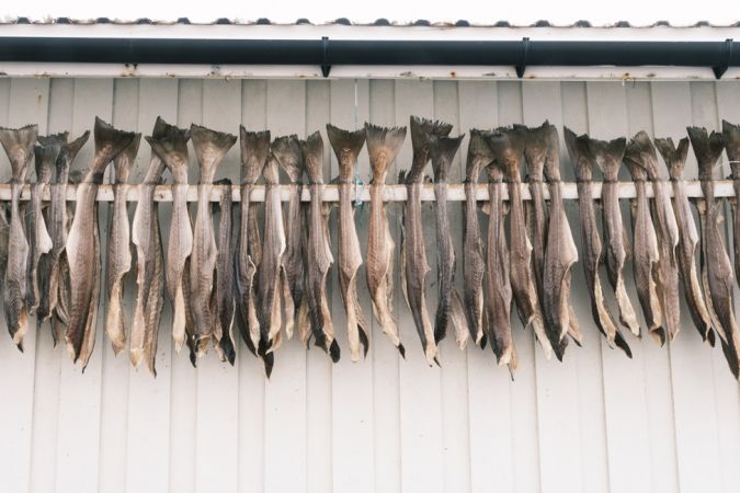 Dorsch wird zu Stockfisch getrocknet