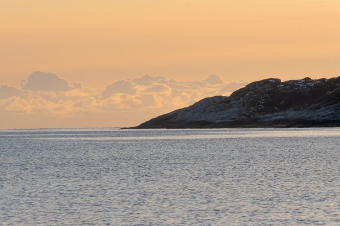 Tags darauf fahren wir hinaus und bei 1000 Metern Wassertiefe sehen wir tatsächlich zwei lange, dunkle Wale mit kleiner Fluke (Finnwale?)! Wir hissen die Segel und drehen ab nach Südwesten. Einige Fronten ziehen durch, auch mal mit Schnee: reffen, ausreffen, reffen, unterhaltsam! Im grossen, geschützten Hafen vom kleinen Stø machen wir am langen Gästesteg fest, die Wolken hängen tief, es ist 2 Grad, etwas trist. Whalewhatching wird ab Juni angeboten, die schön ausgebauten Rorbuer sind auch leer. Wir treffen auf unserem kurzen Spaziergang ein Elsässer Ehepaar, es geniesst den Norden in der Nebensaison mit ihrem Citroën Berlingo Camper!