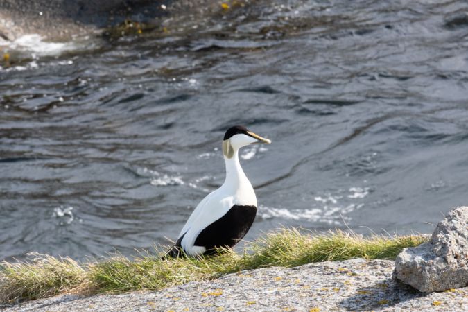 Nach der Hafenausfahrt von Myre empfängt uns launischer Wind zwischen 8 und 18 Knoten, mit Winddrehern. Er nimmt zu, mit 6 Bf (in den Böen auf 7-8) rauschen wir mit gerefften Segeln vor dem Wind durchs Wasser, um uns graues Nichts. Papageientaucher tauchen vor und neben uns ab. Am grossen, privaten Steg vom verschlafenen Alsvåg machen wir fest und vertreten uns die Beine. Kirche, Museum und Laden sind geschlossen.