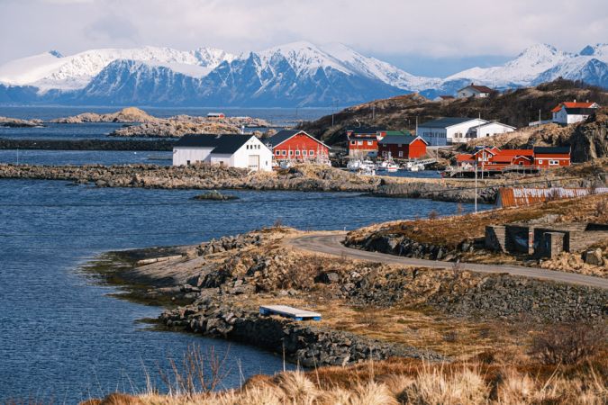 Mit Gross und die Genua segeln wieder vor dem Wind und fahren schliesslich unter Motor durch das betonnte Fahrwasser in den kleinen, gemütlichen Hafen von Risøyhamn. Der Krämerladen hier wird seit 1896 betrieben, alte Werftsgebäude sind teils renoviert, teils am Zerfallen, Rorbuer, hübsch! Beim Ressort nebenan filetieren die Hobby-Fischer ihren Fang, wir werden mit schönen Filets beschenkt, sauber vakuumiert, danke. Ein geschenkter (langer) Tag: Sonnenuntergang ist um 2330, Sonnenaufgang um 0220. Wir segeln gemütlich am Wind über den Andfjorden, es ist Pullover-Wetter, der warme SW-Wind und die Sonne verwöhnen uns. Es apert schnell aus, wird grün, Wasserfälle bringen viel Wasser hinunter ins Meer. Wir kreuzen durch das Riff vor Harstad und bis kurz vor den Hafen, machen fest am leeren Gästesteg. Am Abend ist der Steg belegt.