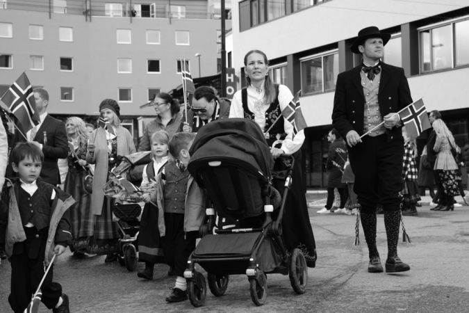 Die Bäume am Hafen am Morgen noch zartgrün, im Lauf des Tages entfalten sich die Blätter, wie im Zeitraffer. 17. Mai, norwegischer Nationalfeiertag, wir mischen uns unter die fröhliche Menschenmenge. Die Norweger sind stolz, sie präsentieren sich in traditioneller Tracht, jeder ist willkommen, die Jugend ist ausgelassen.