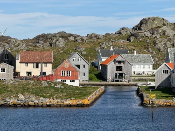 In Haugesund regnet es, tags darauf scheint die Sonne und ein warmer Wind bläst uns nach Røvær, eine Perle. Ein funktionierender kleiner Ort, mit einer Fähre nach Haugesund, Schule, Kirche, Laden, Restaurant (Sjøhus), einer (gesponserten) Ausstellung über Aquakultur.
