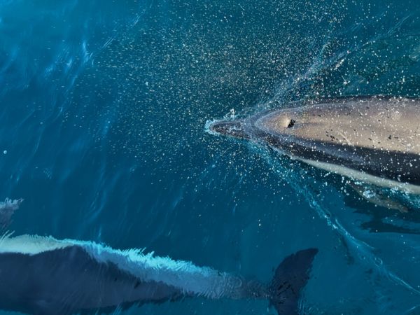 Heute kommen uns unterwegs kurz Delfine besuchen; Wind gegen Strömung bedeutet unangenehme Dünung, wir kommen dennoch zügig nach Aber Wrac’h.
