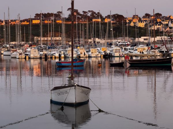 Wir legen ab, setzen die Segel, der Wind ist schwach mit knapp 10 Knoten, dazu eine unruhige See mit vielen kleinen Wellen, unangenehm. Wir können nach einiger Zeit halsen, auf dem anderen Bug segelt es sich ruhiger. Die Einfahrt bei (fast) Hochwasser in den Gezeitenhafen Trébeurden über den Süll ist eng und gut betonnt. Die Einfahrt fällt je nach Gezeitenunterschied trocken!