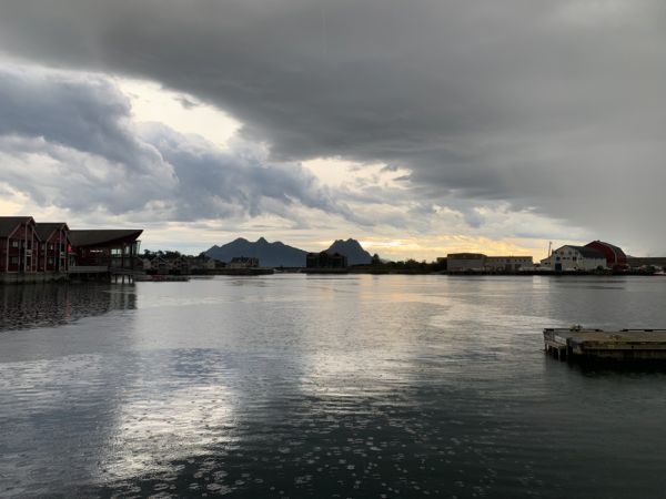 Es hat dieses Jahr viel geregnet auf den Lofoten, nicht immer so stark wie hier im Hafen von Svolvær