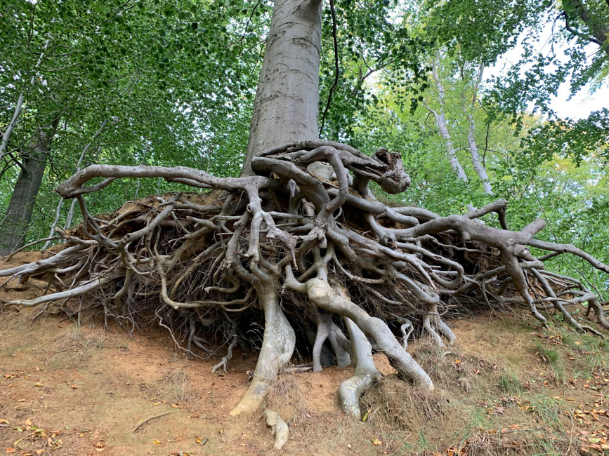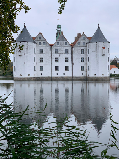 Zu Fuss nach Glücksburg, teils durch alte Buchenwälder, der Förde entlang. Das Wasserschloss wird fotografiert.