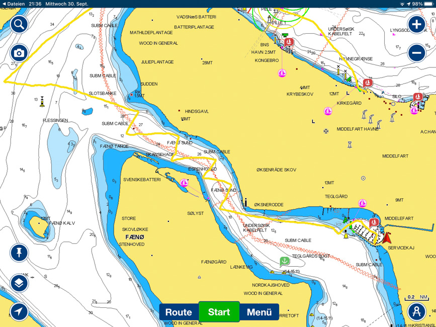 Tags darauf «verfolgt» uns eine Bavaria 46 und überholt uns. Der Kampfgeist erwacht, wir setzen das Gross. Dies wird von der Bavariacrew als Kampfansage angesehen. Durch den schmalen Sund kreuzen wir auf, die reinste Regatta, wir sind Sieger. Im Middelfart Yachthafen, offerieren uns die 5 netten Deutschen aus Kassel das Siegerbier.