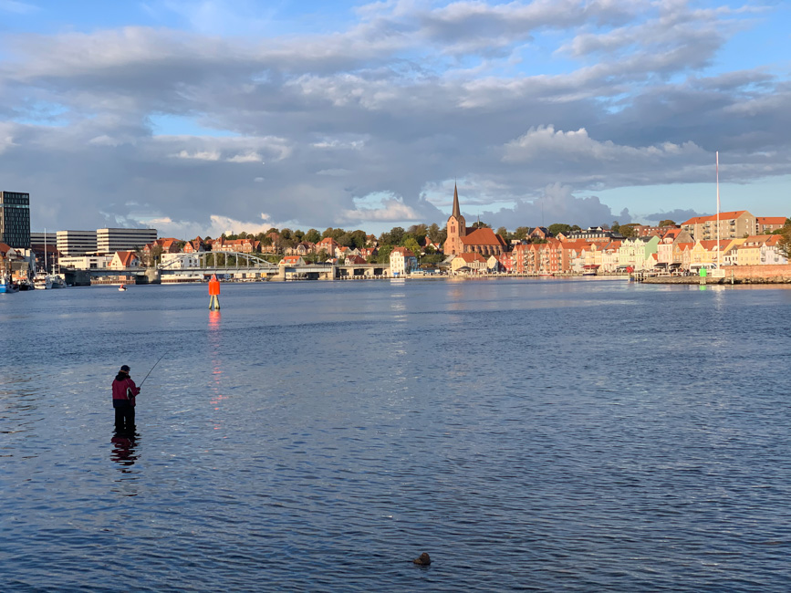 Die Christian X Brücke rufen wir per Funk auf, wir gehen an den waiting pontoon, knapp eine Stunde später öffnet sie und wir machen in der Marina Sønderborg fest. Der nette Hafenmeister meint, wir sollten 5 Tage bleiben (4 bezahlen), es komme Regen und viel Wind vom Baltikum her und die Stege würden überflutet werden.