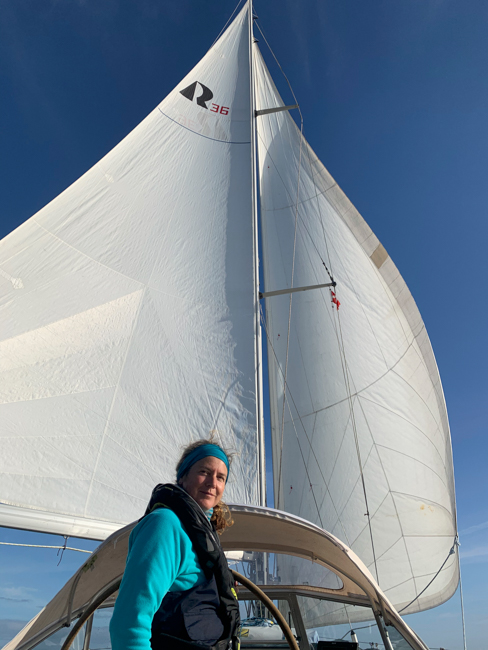 Es wird wieder ein geschenkter Tag, wir fahren los bei Sonnenschein, segeln butterfly; eine Halse und wir sind vor der Marina Minde.