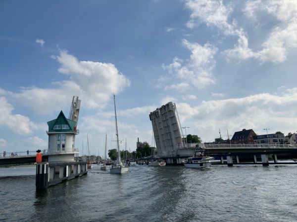Die marode Lindaunis-Brücke soll geöffnet werden, nichts wie los! Die uns vorgängig mitgeteilten Öffnungszeiten sind falsch, um 11:45 schliesst sie vor unseren Augen! Ankern im Gunnebyer-Noor, nicht die Hoffnung aufgeben, etwas essen. Um 15 Uhr machen wir uns wieder auf in Richtung Brücke, um 15:26 ist sie geöffnet, wir fahren durch! Um 16:45 öffnet die Brücke in Kappeln, wir fahren durch bis Maasholm, wo wir ankern.