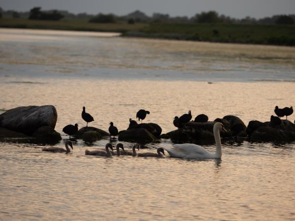 Wir segeln nach Heiligenhafen, tags darauf setzen wir bei wenig Wind nach Fehmarn über, können mehrheitlich segeln und machen in Burgstaaken fest. Vor uns auf den Steinen tummelt sich allerhand Federvieh. Graureiher, Reiherenten, Stockenten (mit Jungen), Graugänse (mit Jungen), Austernfischer (solo), Kormorane.