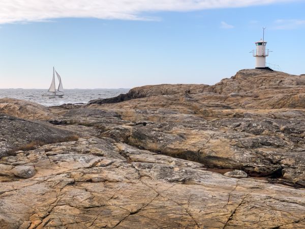 Wir lösen die Leinen und kreuzen nochmals durch die Schären. Marstrand ist unser Ziel, hochgelobt von allen Seiten. Im Gästehafen hat es nun in der Nachsaison viel Platz. Zu Fuß geht’s rund um die Insel, eine Wucht! Diese rundgescheuerten Felsen, freie Sicht nach Westen, zum Pater Noster (Leuchtturm).