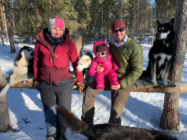 Am nächsten Morgen machen sich Marie-Laure und Thomas bereit zur Schlittenhundefahrt mit Jo, wir sind mit Emma und Rentnerhunden unterwegs, «canirando». Emma will den kommenden Sommer in Skandinavien verbringen vielleicht kreuzen sich unsere Wege irgendwo in Norwegen?