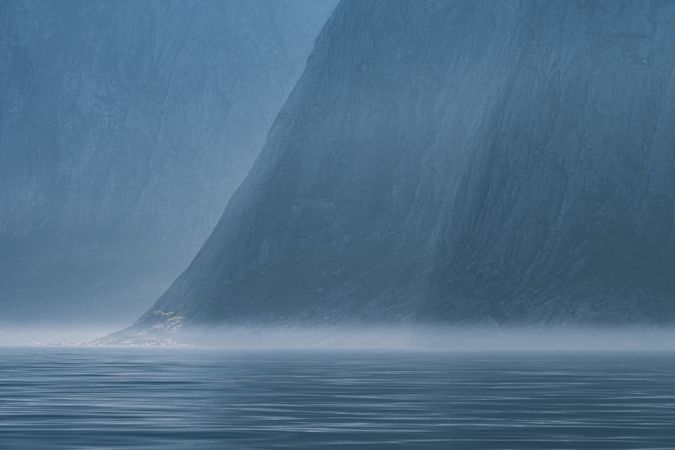 Weiterhin ohne Wind und mit viel Sonne fahren wir in Sommerkleidung der Westküste der Lofoten entlang. An Backbord das Nordmeer, an Steuerbord die Berge, schroff, die senkrechten Wände glattgehobelt. abweisend, wären da nicht die tief eingeschnittenen Buchten mit Sandstränden (insgesamt 4). Eindrücklich, monumental, gewaltig ist die Szenerie. Puffins flüchten vor uns, die Alken sind weniger ängstlich. Adler hat es keine.