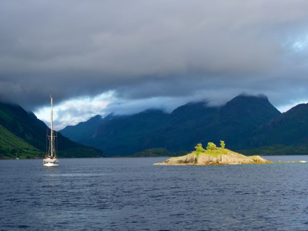 Im breiten Fjord motoren wir gemütlich ostwärts, vorbei an vielen Bunkern aus dem 2. WK. Durch ein vorgelagertes Inselarchipel gelangen wir in den sehr sicheren, ruhigen, schön gelegenen Hafen von Liland. Schon eher eine Traumdestination.