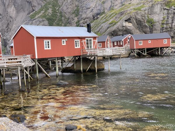 Svolvær ist modern geworden, mit Hotels, Restaurants, der Tourismus boomt. Die roten Fischerhäuschen (Rorbuer) gibt es jedoch noch, zwischen Januar und April wird weiterhin der weltweit grösste Kabeljaufang eingefahren und teilweise traditionell an den Holzgestellen getrocknet; jetzt im Sommer hängen nur ein paar Fischköpfe daran.