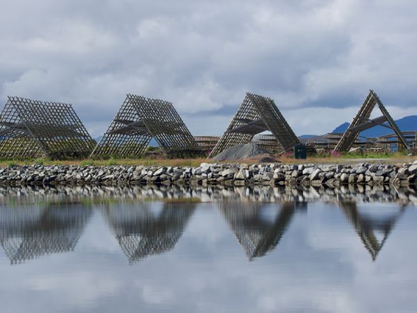 Laurvik. Auf solchen Gestellen wird der Dorsch zu Stockfisch getrocknet