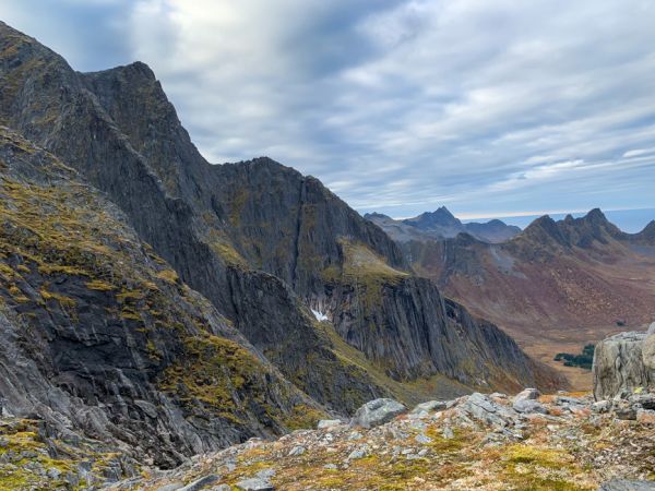 Steiler, aber schöner Aufstieg zum «Roalden», vorbei an kläglichen Resten eines Gletschers und einem kleinen Gletschersee. Etwas unterhalb des Gipfels (ca 620müM) grandiose Sicht auf Bergseen und hinüber fast bis Tromsø, wahrscheinlich die letzte grössere Wanderung diese Saison